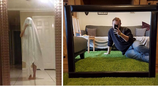 Прямо сейчас идет заразительная лента в Twitter, люди публикуют фотографии зеркал и судя по их попыткам — это становится непреднамеренно веселым хитом года. Некоторые люди явно ушли вглубь, чтобы спрятаться, другие на виду. Еще есть категория людей, которые считают свое отражение небольшой саморекламой.