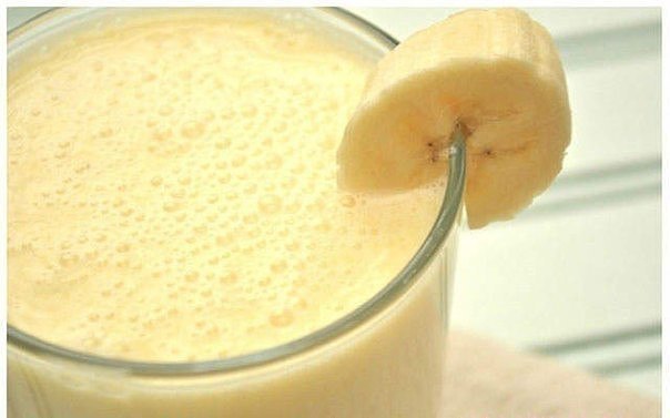 300 гр. молока, 3 столовые ложки сухих овсяных хлопьев, 1 банан и столовая ложка меда.
