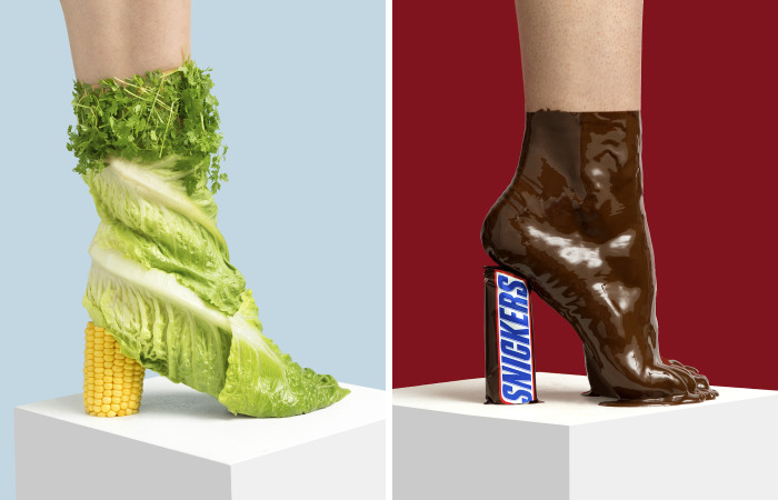 Серия «Everyday shoes», которую я сделал, представляет собой замечательное сочетание странных ботинок и блестящих идей, которые вас шокируют. Из мясных туфель различной формы, ботинок из овощей, ботинок, идеально подходящих для разных случаев и на заказ — шоколадные шпильки. У меня есть все!