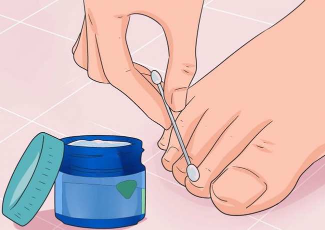 Смочите ватный диск, поместите его на ноготь и оставьте действовать в течение 45 минут. Затем почистите ноготь зубной щеткой и промойте.
