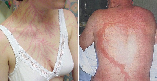 По мере того, как молния перемещается по поверхности тела, она может вывести красные кровяные клетки из ваших капилляров в ваш эпидермис. Эти шрамы являются ранее упоминавшимися цифрами Лихтенберга. Температура может также нагревать любой металл, который вы носите, вызывая ожоги третьей степени. Прокрутите вниз, чтобы увидеть людей, переживших этот сумасшедший опыт!