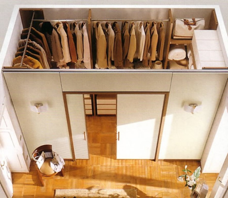 Само собой разумеется, что для максимального удобства, лучше, чтобы гардеробная находилась в спальне, но не спешите отметать вариант с холлом – это тоже весьма приемлемый подход. В спальне вы можете использовать любое свободное пространство — пустующую нишу, углубление или свободный угол.
