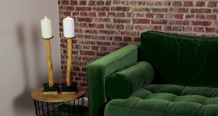 Вы также можете украсить свой подсвечник, используя сосновые шишки и декоративный мох.