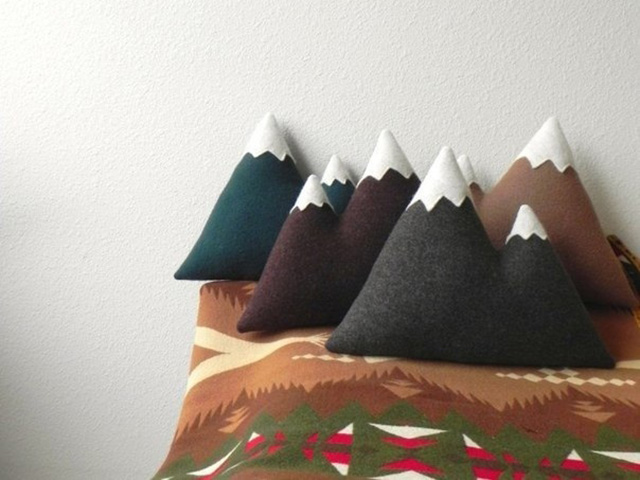 Если вас манит величие гор, но до Гималаев не одна сотня километров, тогда вы можете «окунуться» в горный мир у себя дома. Для этого вам понадобятся очень симпатичные декоративные подушки-горы, которые станут отличным дополнением любого интерьера. Но самое приятное, что вы с легкостью можете сделать такие «горы» своими руками. Так что создадим горный пейзаж… у вас на кровати?