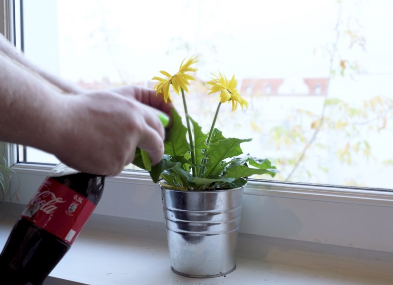 Хорошо опрыскивать любые растения, которые есть у вас дома, с жидкостью, содержащей фосфор и сахар. И вот когда вам пригодится кола! Во-первых, убедитесь, что напиток имеет комнатную температуру. Просто заполните баллончик с распылителем колой и закройте. Всего несколько распылений и ваши растения будут вам невероятно благодарны. Это даже хорошо для предотвращения нежелательных вредителей.