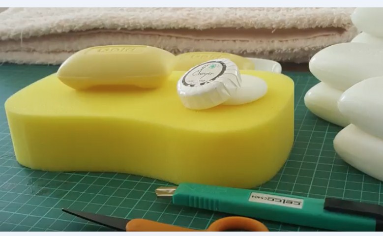 Как только вы создали углубление в губке, поместите мыло внутрь.