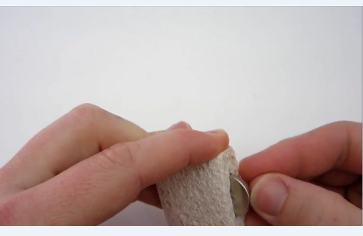 Вырежьте стандартную губку до размера магнита. Если губка слишком велика, может быть неудобно перемещать ее и, возможно, она не пройдет через отверстие вазы.