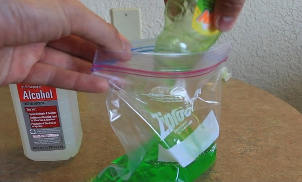 Вы можете использовать либо моющее средство для посуды со спиртом, либо заменить первое водой.