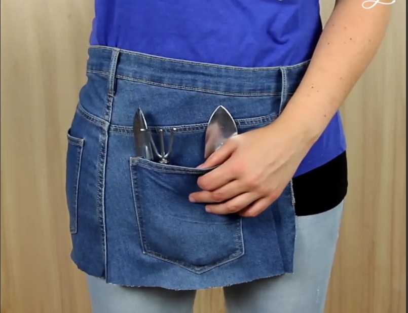 Любители садоводства полюбят этот новый самодельный чехол. Если у вас есть швейная машина, вы можете даже подшить подол и края вашей сумки, чтобы она не растрепалась со временем. Это быстро и легко сделать, так что обязательно стоит попробовать реализовать идею со старыми джинсами.