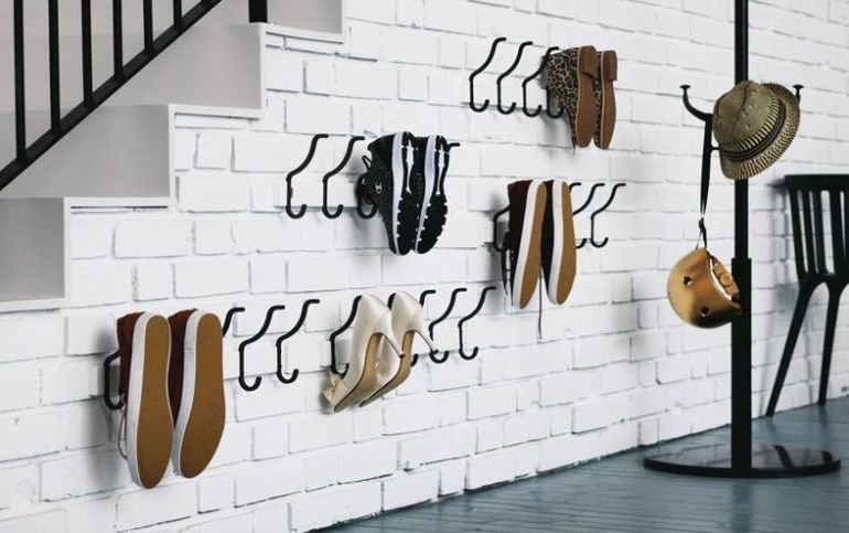 Установка крючков для одежды на уровне пола открывает целый ряд возможностей для хранения обуви.