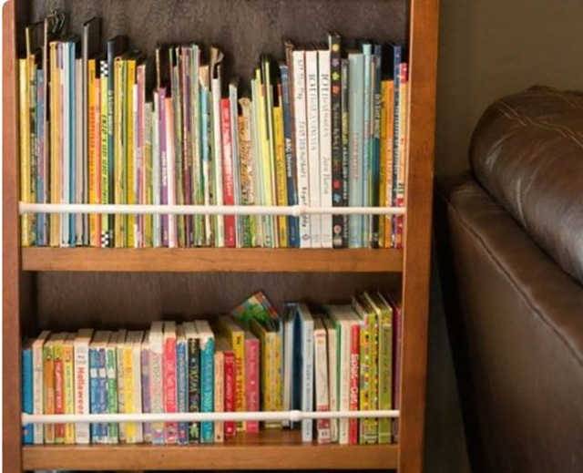 Вы также можете использовать натяжные стержни, чтобы остановить книги, падающие с полки на ваших детей.