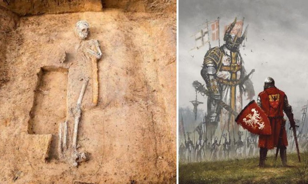 Тело человека, которое, как говорят, было около 2 метров в высоту, и он, наверняка, был бы очень высоким для человека, живущего в наш период, и его можно было бы назвать великаном. Человек был похоронен с мечом и копьем, и археологи считают, что, возможно, он был воином и, возможно, лидером племени.