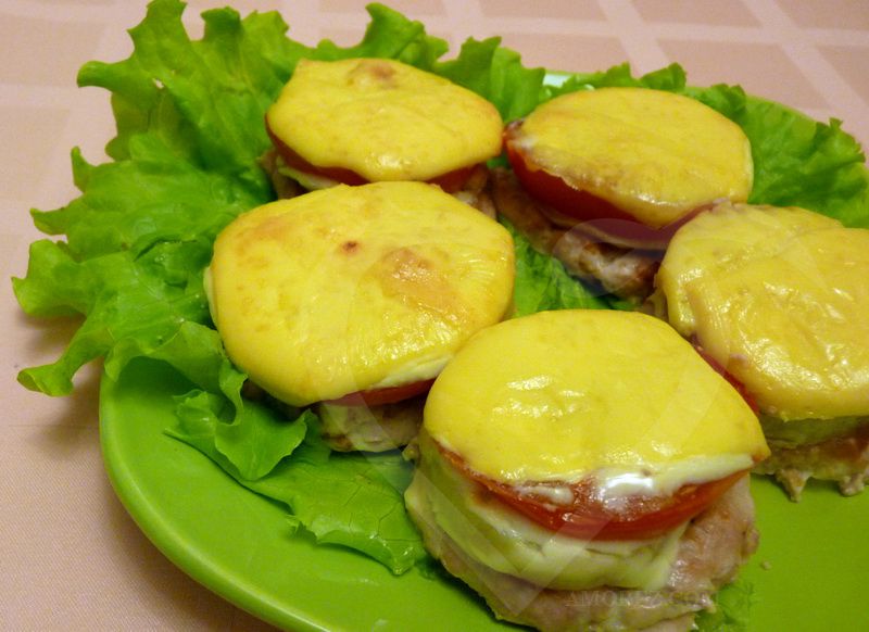 Хотя мы и привыкли, что котлеты всегда стандартной формы и готовятся тоже по давно известному рецепту, все же существуют рецепты и необычных котлет. Во-первых, в нашем рецепте котлеты выпекают. Это придает им особый вкус, который отличается от тех, которые тушат. При этом он не становится хуже, а даже наоборот. Во-вторых, если вы обратили внимание, эти котлетки еще украшаются сверху помидорами, луком и сыром. Таким образом блюдо приобретает совсем иной вид. Их можно даже готовить к праздничному столу, так как они выглядят очень аппетитно, и ваши гости будут в восторге. Перед подачей можно украсить их зеленью.
