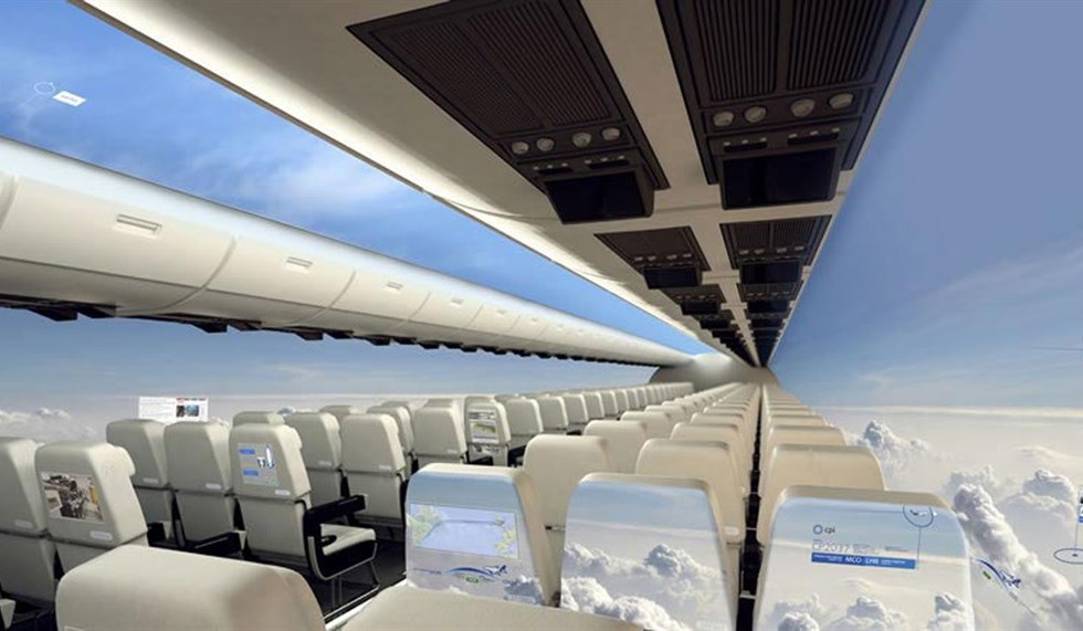 Футуристические самолеты будут фактически без окон. Вместо этого самолет по всей длине будет покрыт сенсорными экранами OLED. По сути, предоставив каждому в самолете виртуальное сиденье у окна!