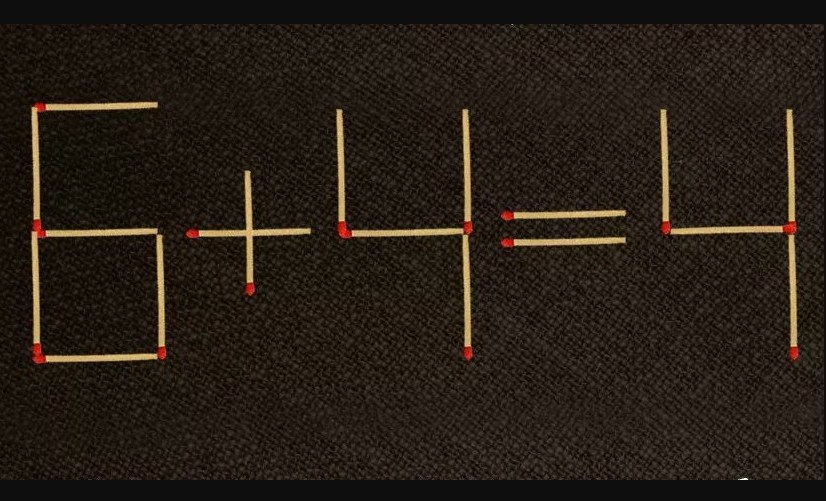 Вот неправильное уравнение, изображенное с помощью спичек 6 + 4 = 4, и вы должны исправить это, переместив одну спичку в другое место.