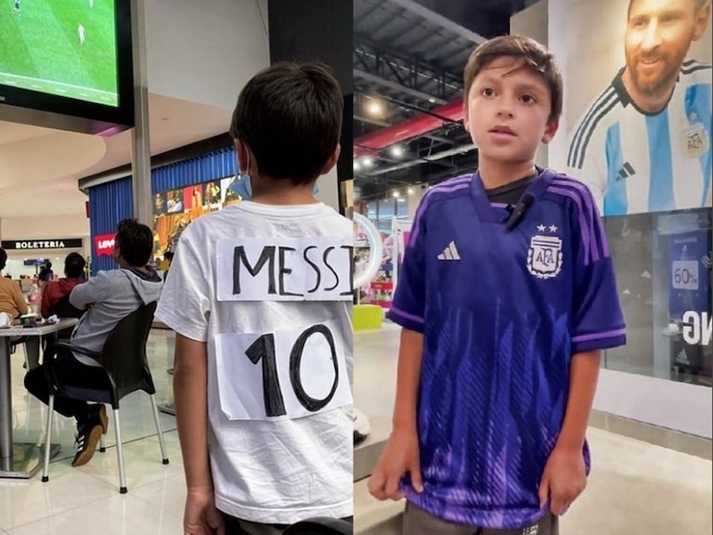 Мальчишка из бедной семьи сделал себе форму Месси и болел за Аргентину в торговом центре. Ему купили настоящую форму Лео