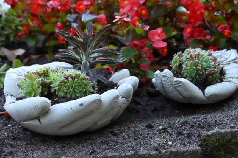 Теперь эти цементные руки будут держать ваши цветы и растения, которые вы в них посадите. И оказалось все очень просто. Не у всех будут такие удивительные цветочные горшки.