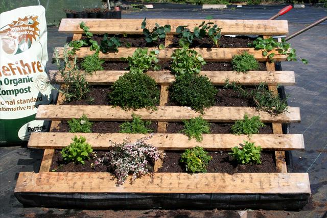 Покрасьте темной краской передние части конструкции. Тут вы будете писать названия трав, которые посадите.