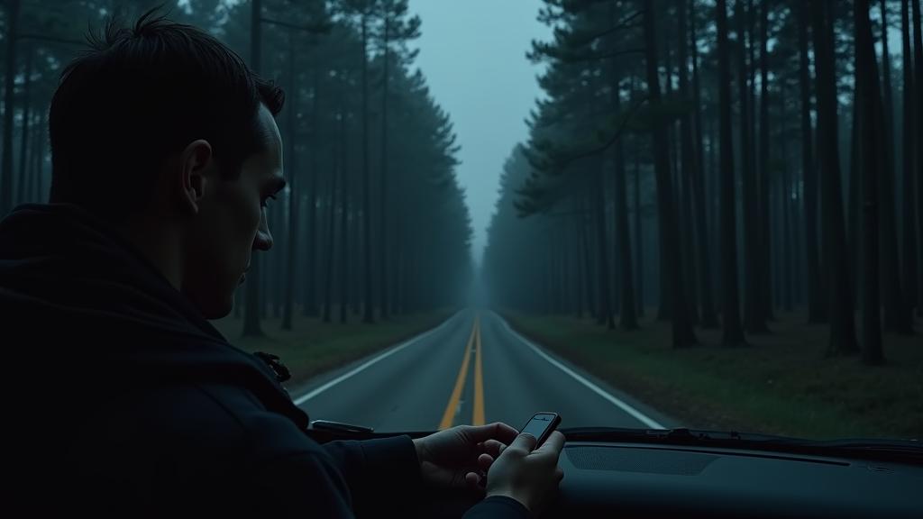 Лес, через который он проезжал, выглядел каким-то… недружелюбным. Высокие сосны вырисовывались чёрными силуэтами на фоне редких звёзд, как будто заслоняя их. Казалось, воздух здесь был плотнее, а шоссе тянулось бесконечно. Кирилл глянул на телефон – почти полночь. Машина, как всегда, ровно шуршала по асфальту, фары выхватывали дорожные знаки и отблески глаз диких зверей. Но тревожное чувство, будто изнутри кто-то выкрутил настройки спокойствия, не отпускало.