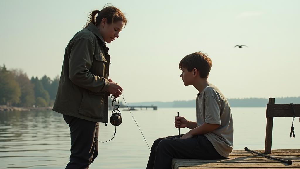 Они вернулись к реке, и Валентина Павловна начала показывать, как правильно забрасывать леску, как следить за поплавком. Мальчик повторял за ней, иногда ошибался, но упорно пытался снова.