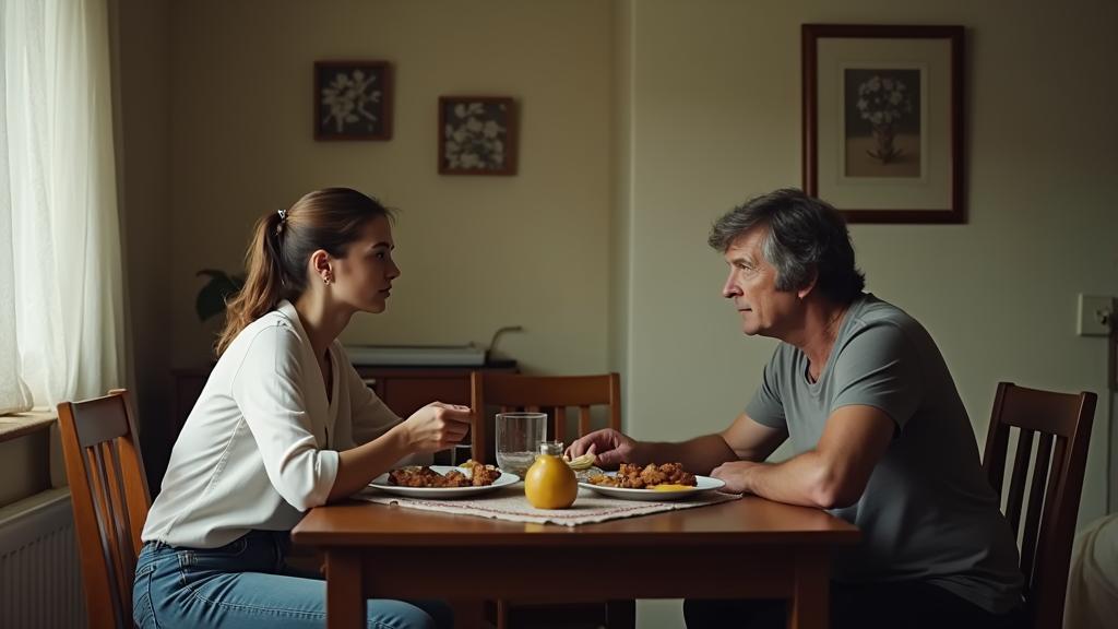 ​Лиза замерла. Взглянула на Сергея – тот безмятежно жевал, увлечённо рассказывая о работе. Видимо, не заметил, как за столом повисло напряжение. Лиза взялась за вилку, но кусок так и остался на тарелке. В горле пересохло. Казалось, воздух в комнате загустел, стал вязким, как мёд. Только мёд – это сладость, а тут… тут горечь.​
