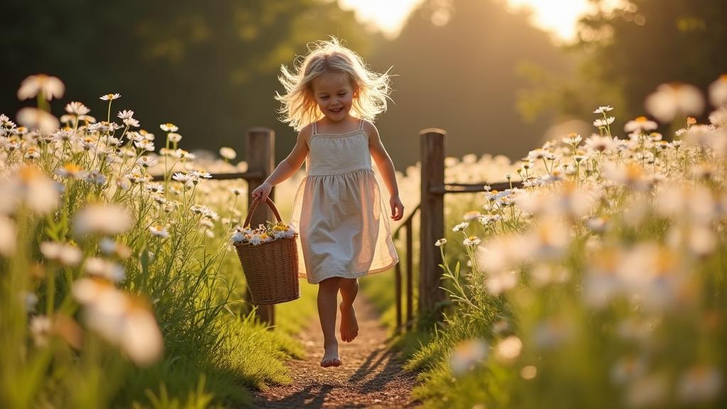 Маша любила цветы. Каждое утро, как только солнце начинало золотить край поля, она убегала за калитку с маленькой плетёной корзинкой в руках. Её босые ножки мелькали по тропинке, а волосы разлетались на ветру. Она знала это поле как свои пять пальцев. Где растут самые крупные ромашки, где прячутся васильки, а где можно найти клевер – в её маленьком мире всё имело своё место.