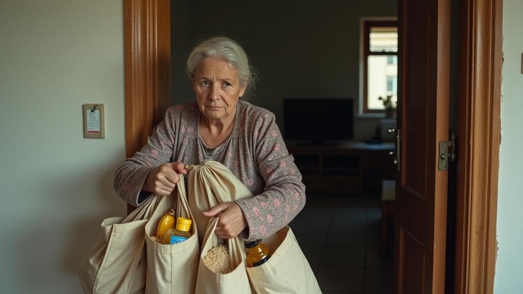 Анна Петровна открыла дверь своей небольшой двухкомнатной квартиры, стараясь не уронить авоськи. Из пакетов, перевёрнутых боком, выглядывала гречка, банановые хвостики и аккуратно завёрнутая в газету бутылка с подсолнечным маслом. Она всегда брала масло в упаковке, потому что Алексей, её сын, говорил, что без неё у него вечно всё заляпано жирными разводами.