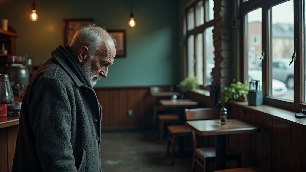 Кафешка у меня тогда совсем маленькая была, в основном водители у меня питались да студенты, а ни те, ни другие, после себя ничего не оставляют. Поэтому он помялся да и вошёл: сгорбленный, серый весь какой-то, кашель жуткий.