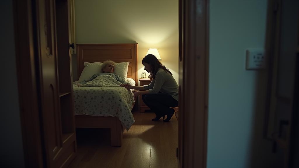 Она села рядом с кроватью на стул, достала таблетку из баночки, налила стакан воды.