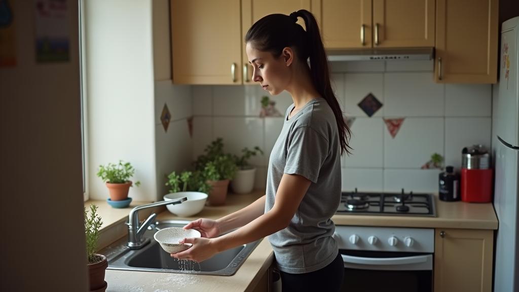 Триша взяла стопку тарелок и намеренно пронесла ее над ним, чтобы стекающие капли попали на его макушку, и молча удалилась.