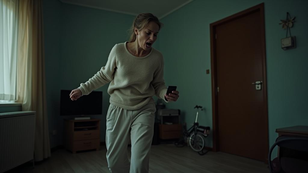 Мама заглядывает в комнату, на её лице — беспокойство и растерянность.