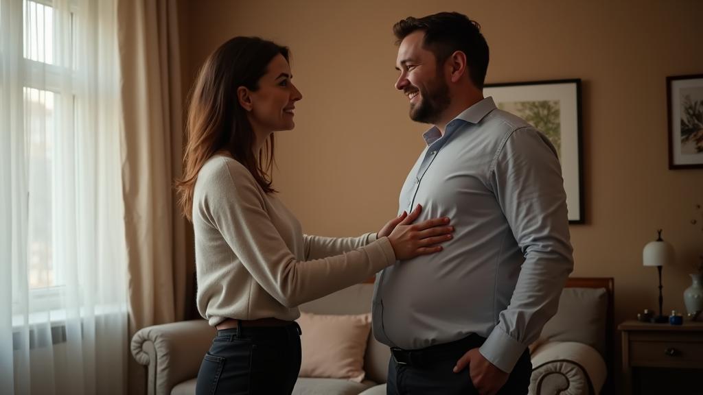 Я смотрела на мужа и не могла сдержать улыбку. За последние месяцы он заметно округлился, и теперь его некогда подтянутый живот выпирал. Не удержалась и легонько похлопала по нему.