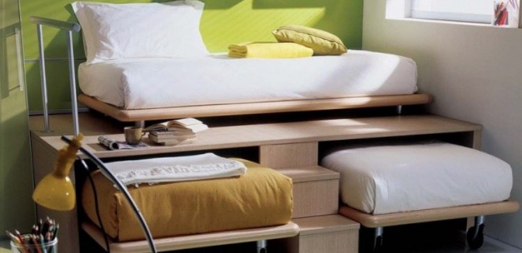 Кровать-раскладушка экономит пространство и позволяет иметь доступ к дополнительным кроватям тоже. Эта кровать имеет две скрытые кровати внизу, так что вдвойне удобно, и экономит пространство в два раза больше.