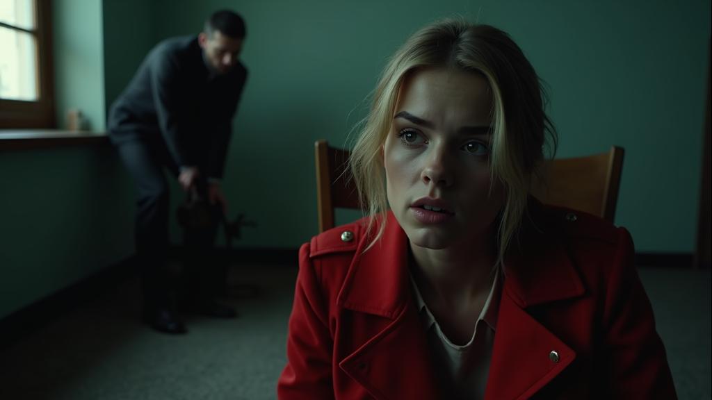 А потом хмурый блондин, похитивший её на улице, подходит и молча отвязывает её руки и ноги от стула.