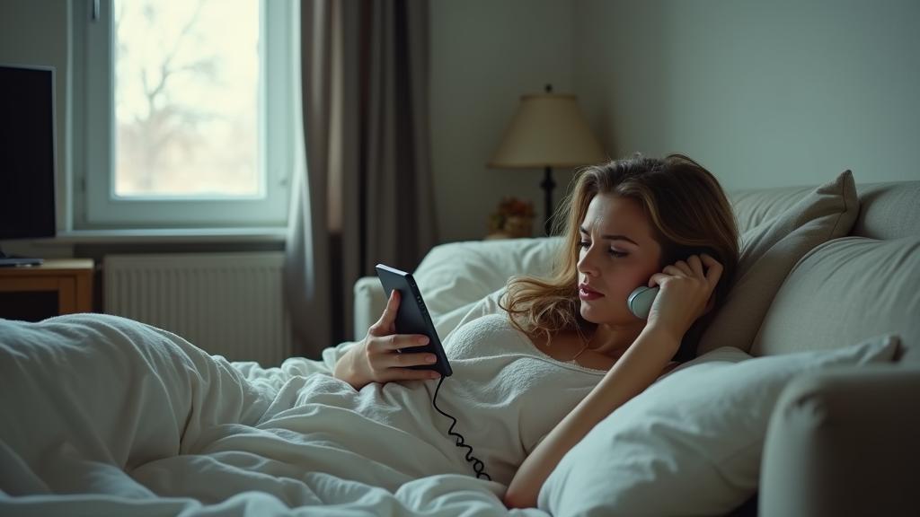 Девушка ушла в спальню за телефоном. Вернулась она нервно посмеиваясь.