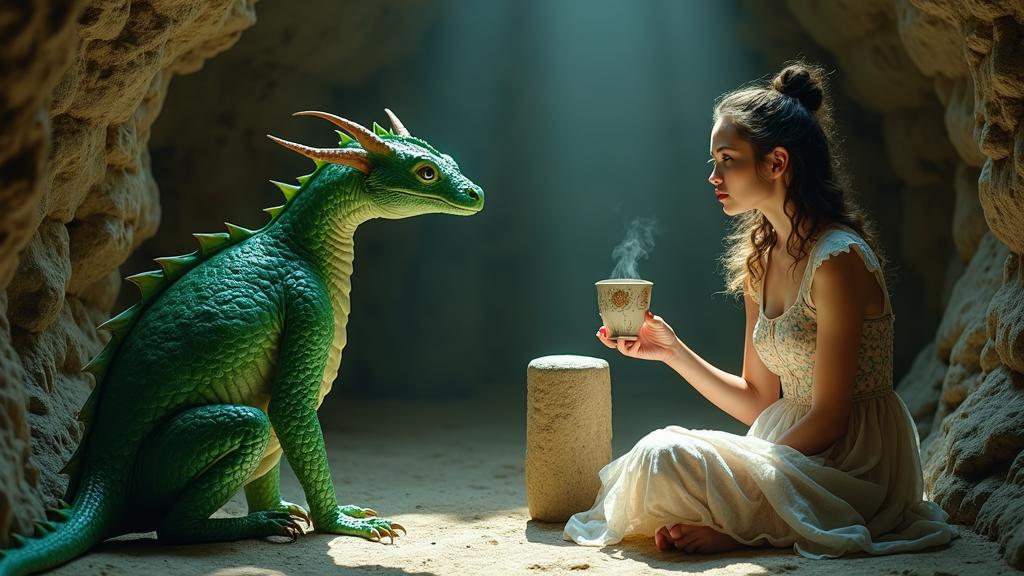 Лафтерис, как порядочный дракон, не мог больше наблюдать за страданиями принцессы, которая за прошедшее время стала ему первым настоящим другом. Поэтому он строго-настрого наказал девушке спрятаться в самой безопасной части пещеры, а сам отправился искать несостоявшегося “героя”.