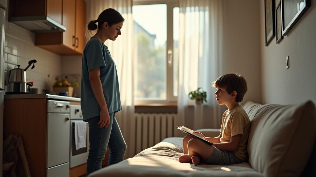 — А ты не кричи на него, от этого полку не будет, – улыбаясь, произнесла женщина. Никита, читающий книгу на диване, активно закивал головой, подтверждая слова мамы.