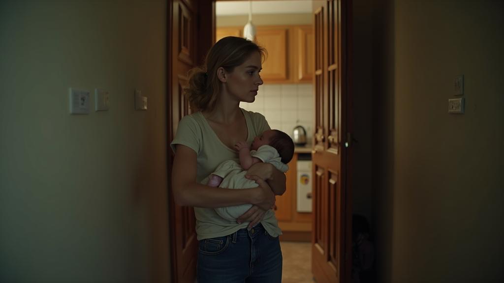 Анна остановилась в коридоре, крепко прижимая к себе спящего сына. Она планировала незаметно пройти в комнату после прогулки, пока малыш не проснулся, но шум на кухне не позволил ей отойти дальше.