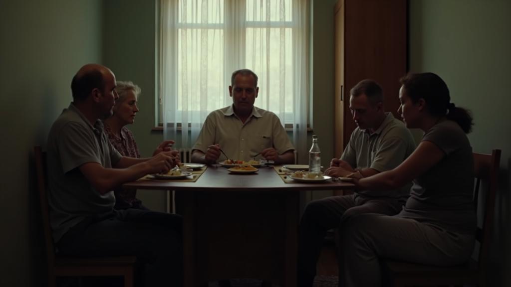 Прошло время. В новом доме снова собралась семья за ужином.