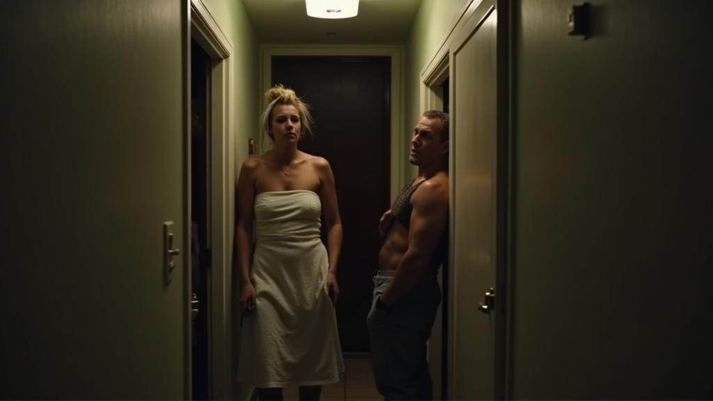 Она вышла из ванной, полотенце на голове.