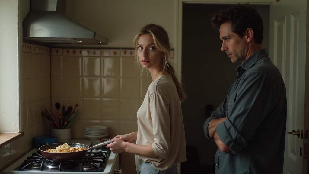 Она говорила спокойно, почти буднично, что раздражало его ещё больше. Он ожидал оправданий, слёз, чего угодно, кроме этого холодного, режущего сарказма. Он сделал шаг вперёд, заслонив собой свет от окна, и его тень упала на плиту, её руки и на сковороду с шипящим ужином.