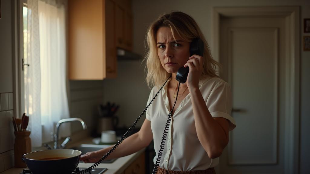 Ольга нахмурилась, прижимая телефон к уху плечом, одновременно помешивая суп на плите.