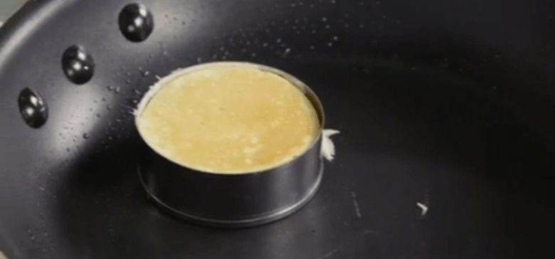 4. Поместите формы в центре вашей сковороды и влейте тесто, пока наполовину. Жарьте в течение 4-х минут.