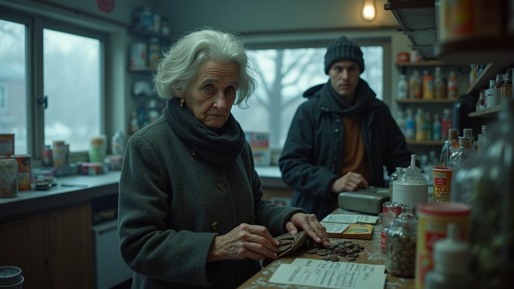 Тамара Сергеевна неизменно появлялась в магазине ровно в семь утра. Круглосуточный «Продукты 24 часа» к этому времени обычно пустовал — лишь ночные работники и случайные бессонные прохожие заходили внутрь. Её потёртое серое пальто и выцветший платок давно стали знакомыми для персонала. Старушка посещала магазин дважды в неделю, строго по расписанию — во вторник и пятницу.