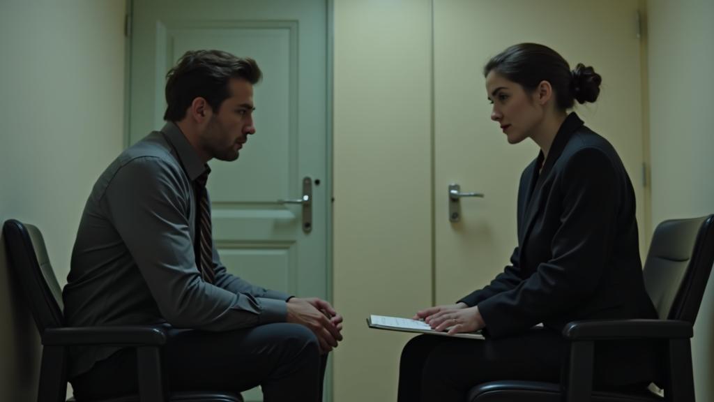 Сидя перед ней, он ощущал, как потеют ладони, как галстук жмёт шею. Казалось, что он снова стал маленьким перед лицом прошлого.