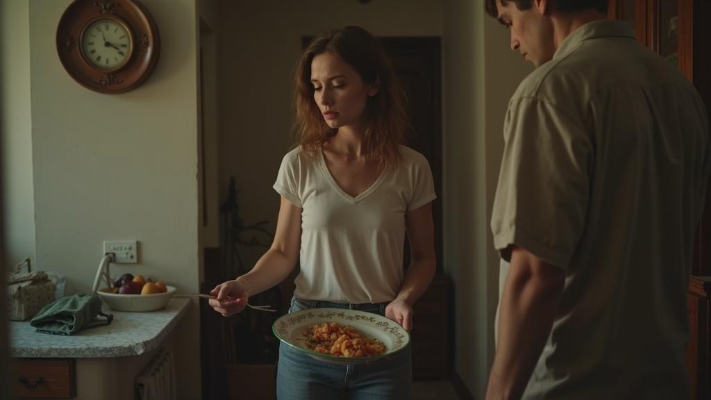 Тамара стояла босиком на тёплом полу и слегка вздрогнула. Повернулась к мужу, удерживая в руках тарелку с остатками ужина.