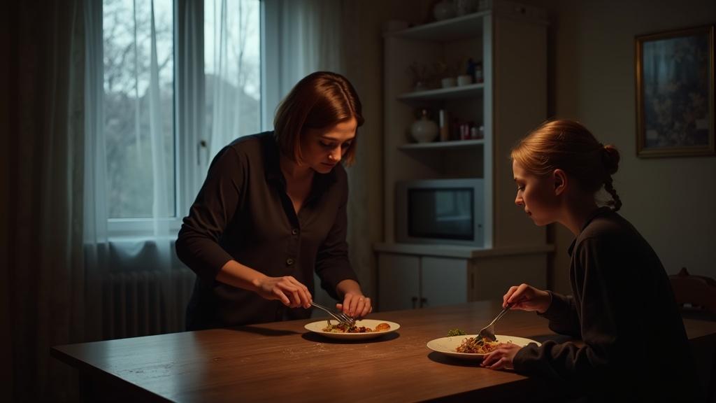 Тамара поставила перед свекровью тарелку с горячими котлетами. Нина Петровна придиралась к каждой мелочи — то соли мало, то картошка переварена. Ужин прошел в напряженной тишине, и Тамара ощущала, как внутри растет тревога. Это был всего лишь первый вечер. ***