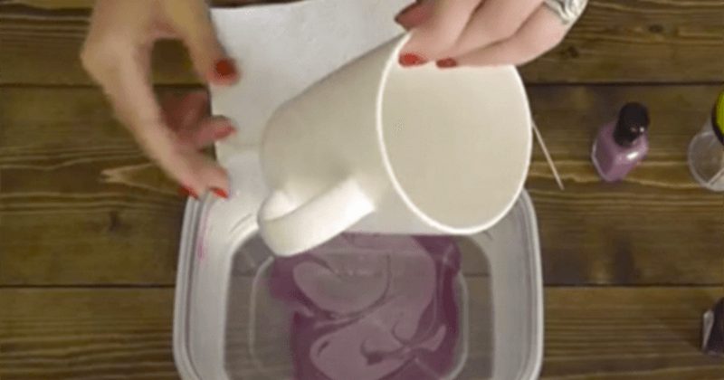 Она опускает кружку в миску с водой и лаком для ногтей. Получается идеальный подарок
