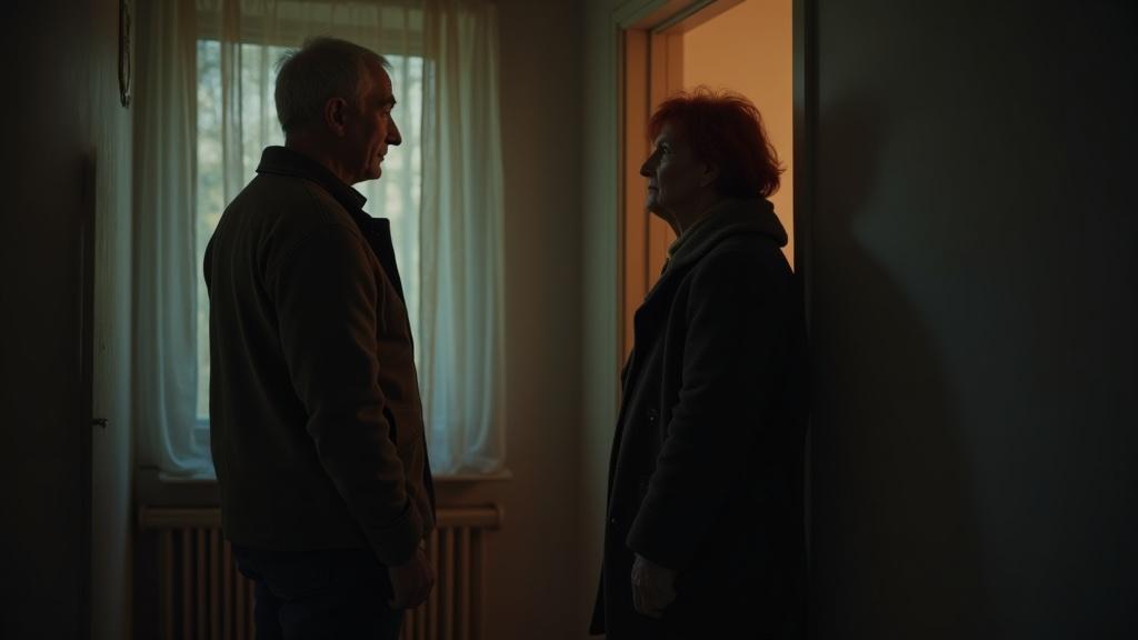 Тамара сделала шаг вперёд, и половица предательски заскрипела под ногой. Голоса мгновенно стихли. Через секунду в дверном проёме появился Алексей. За его спиной виднелась пожилая женщина с ярко-рыжими крашеными волосами.