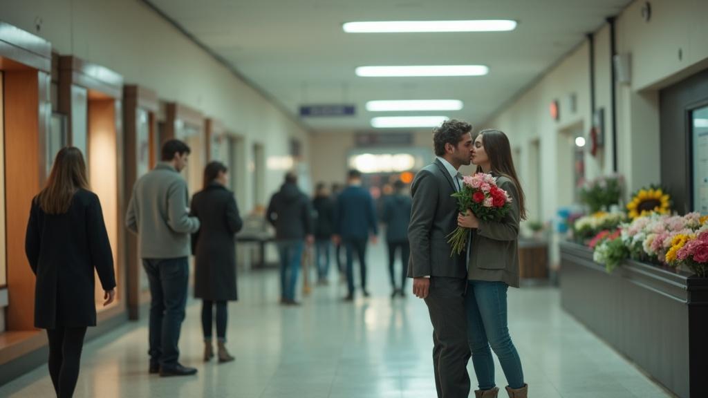Наталья прогуливалась по Скадовску вместе с Ириной, обсуждая планы на предстоящие выходные, когда её взгляд внезапно остановился на знакомом силуэте. Алексей стоял у цветочного киоска в дальнем конце холла.